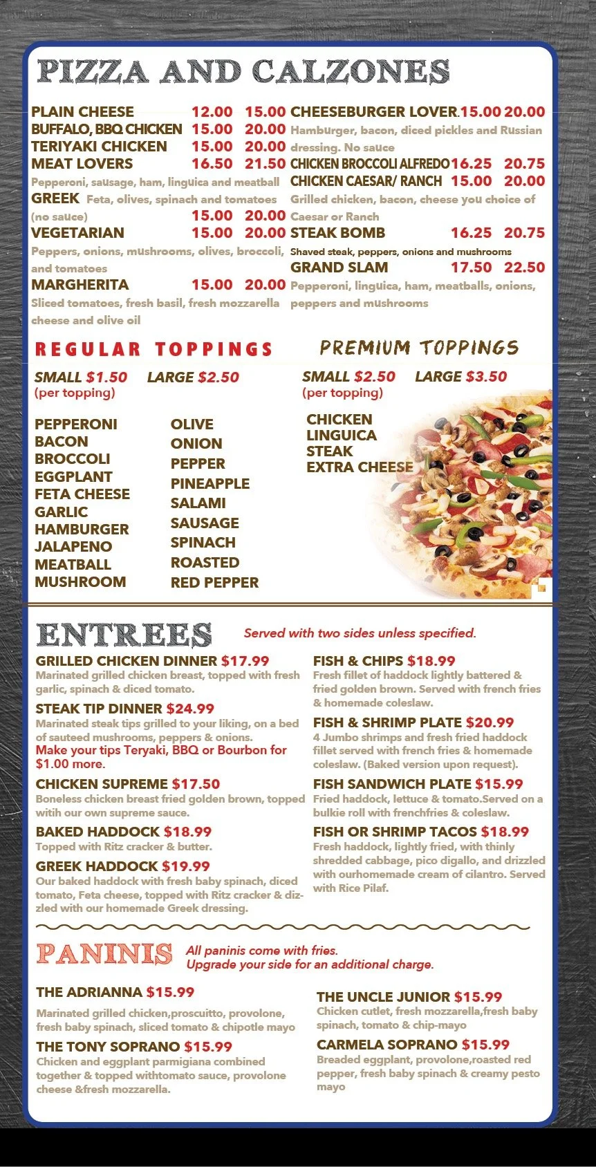 Please note orders must be placed at least 1/2 hour prior to closing. There is a delivery fee of $2.50. Gratuity is